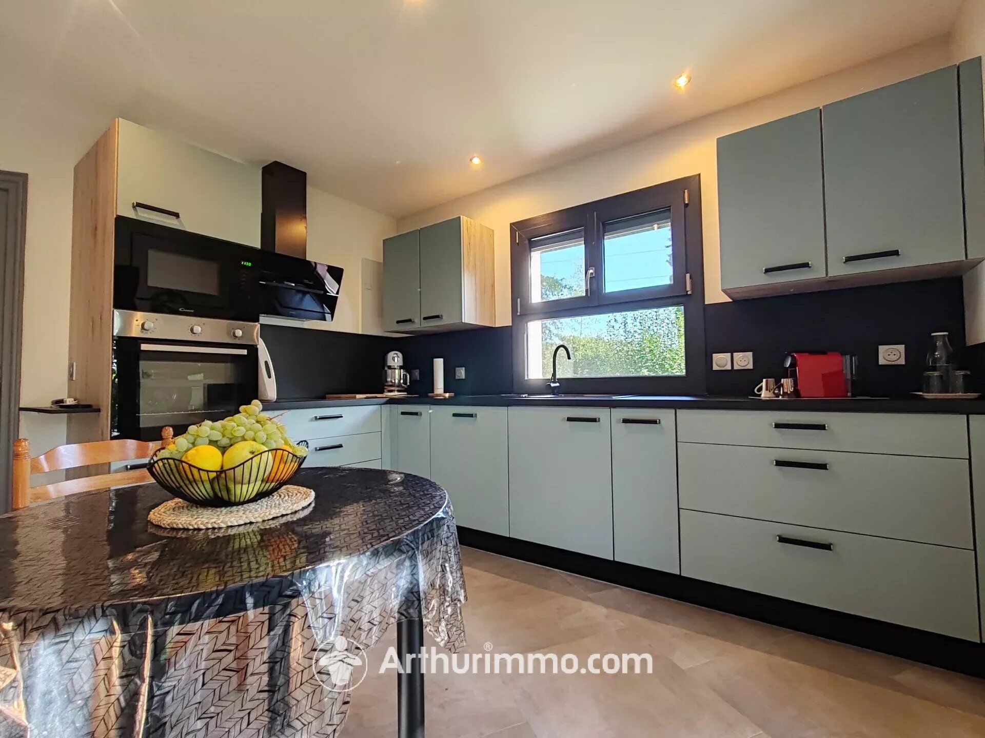 Le rez-de-chaussée s’organise autour d’une cuisine moderne, entièrement aménagée et équipée, prolongée par une terrasse couverte parfaite pour les repas en plein air. Le séjour, baigné de lumière, invite à la détente. Deux chambres avec rangements, une salle de bain équipée d’une douche, ainsi que des toilettes séparées complètent ce niveau.